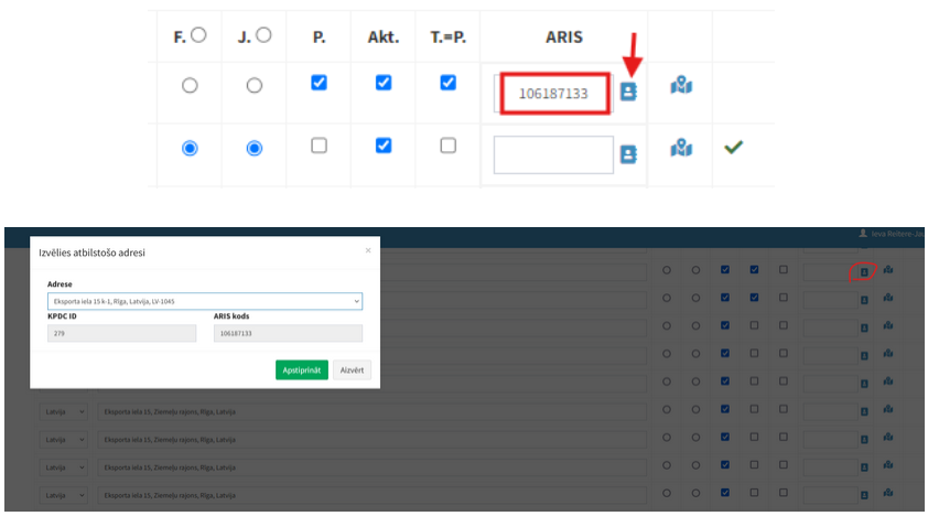 5) Pamatdati - > Uzņēmumi adrešu ARIS kods